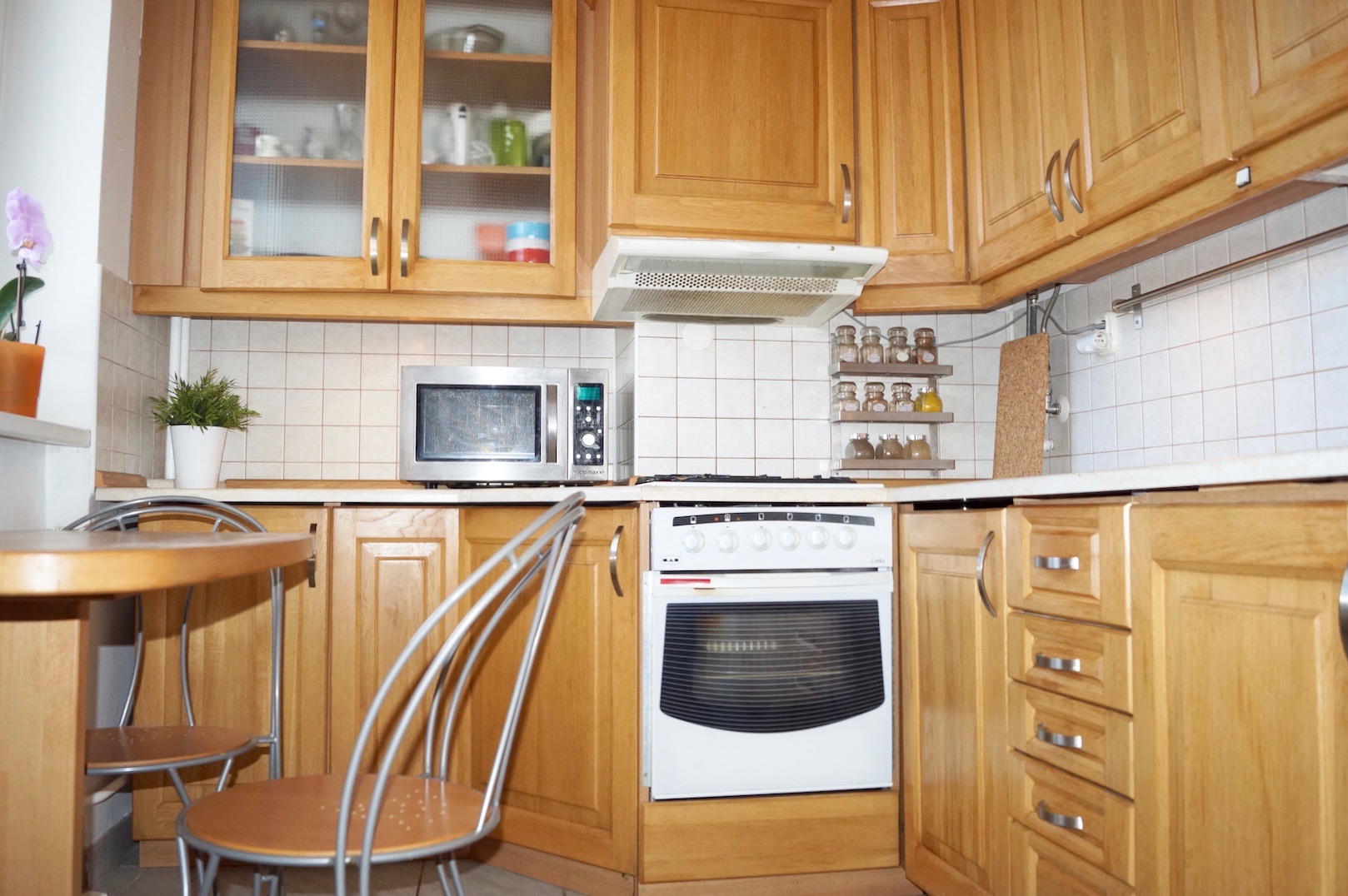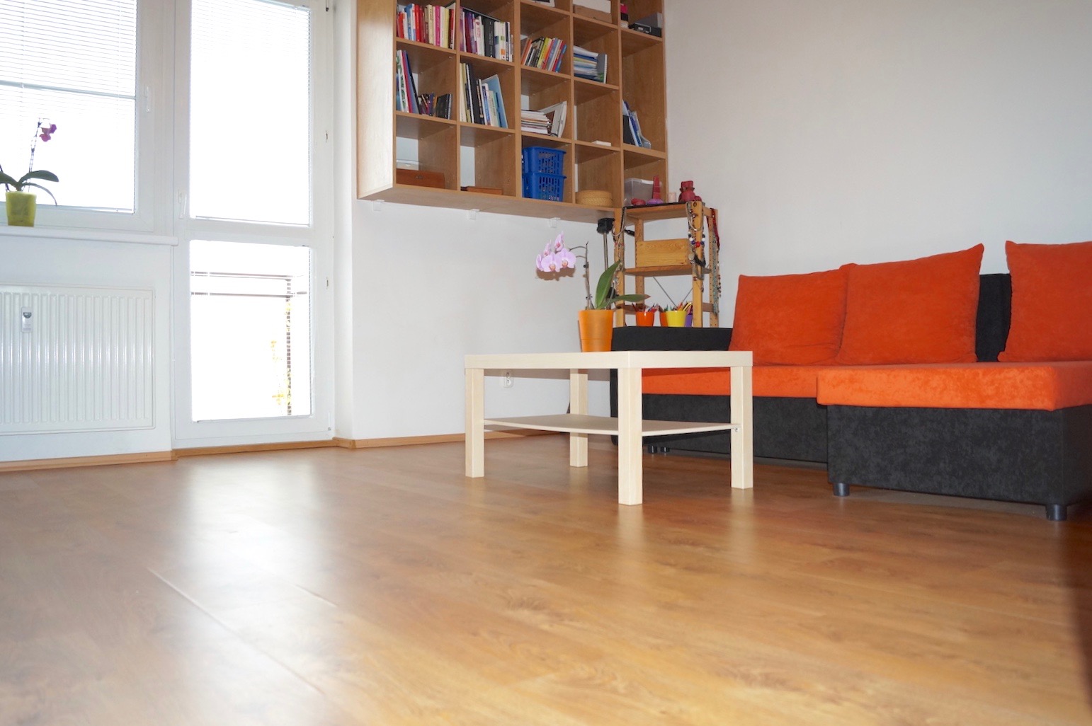 - zaujímavo a prakticky zrekonštruovaný byt – vymenené rozvody vody, elektriny, plastové okná, drevená kuchynská linka a nábytok na mieru, zmenená dispozícia kúpeľne s rohovou vaňou